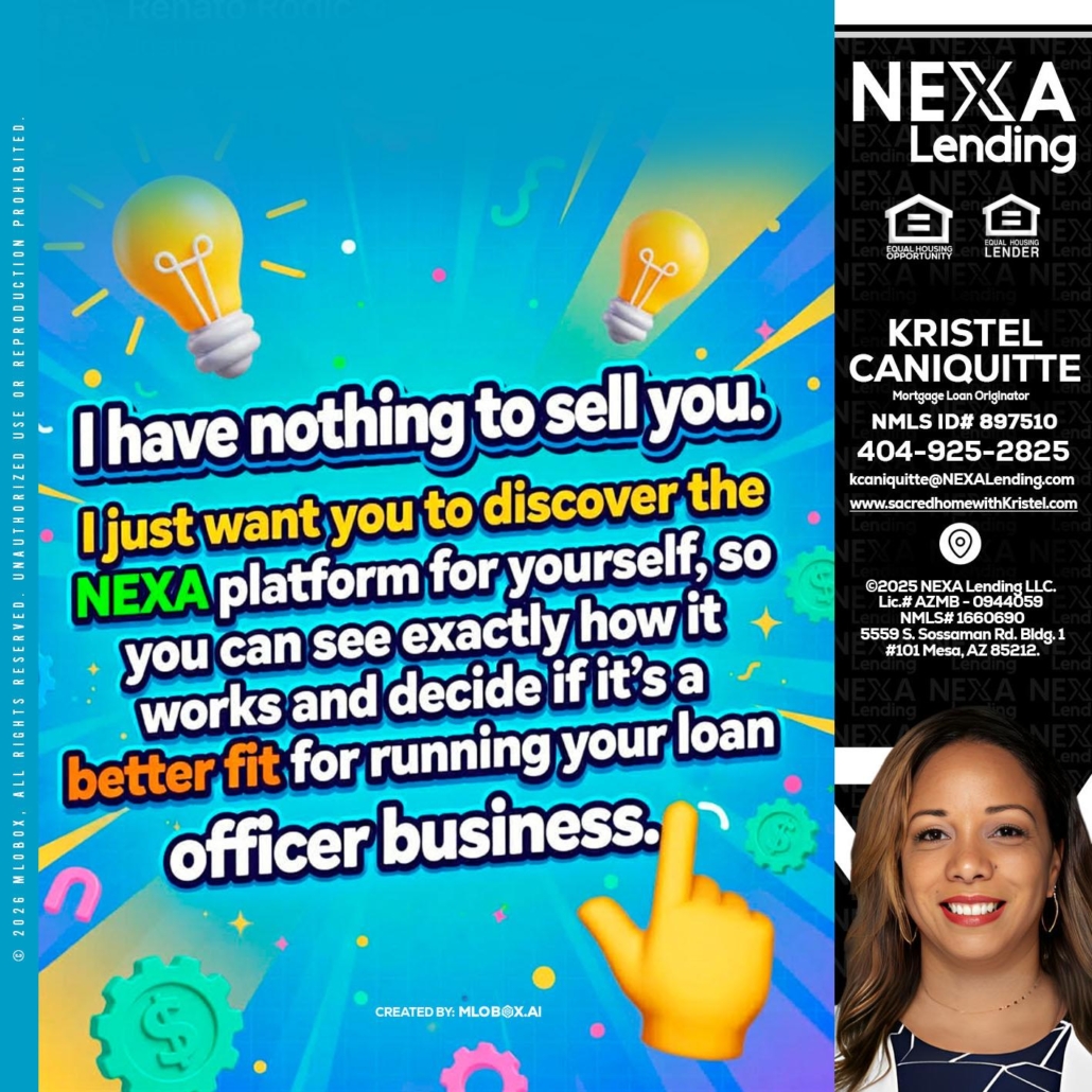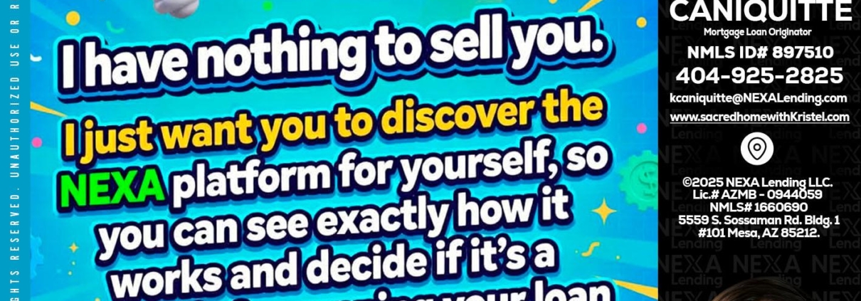 Hi, my name is Kristel Caniquitte. I’m a Loan Officer with NEXA Lending LLC., offering personalized mortgage solutions, fast customized quotes, great rates and service with integrity.