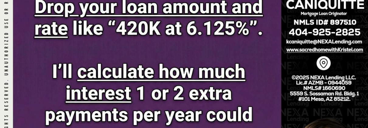 ONE EXTRA - Kristel Caniquitte -Mortgage Loan OriginatorHi, my name is Kristel Caniquitte. I’m a Loan Officer with NEXA Lending LLC., offering personalized mortgage solutions, fast customized quotes, great rates and service with integrity.