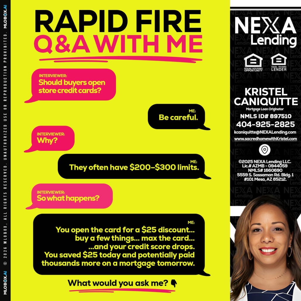 Hi, my name is Kristel Caniquitte. I’m a Loan Officer with NEXA Lending LLC., offering personalized mortgage solutions, fast customized quotes, great rates and service with integrity.